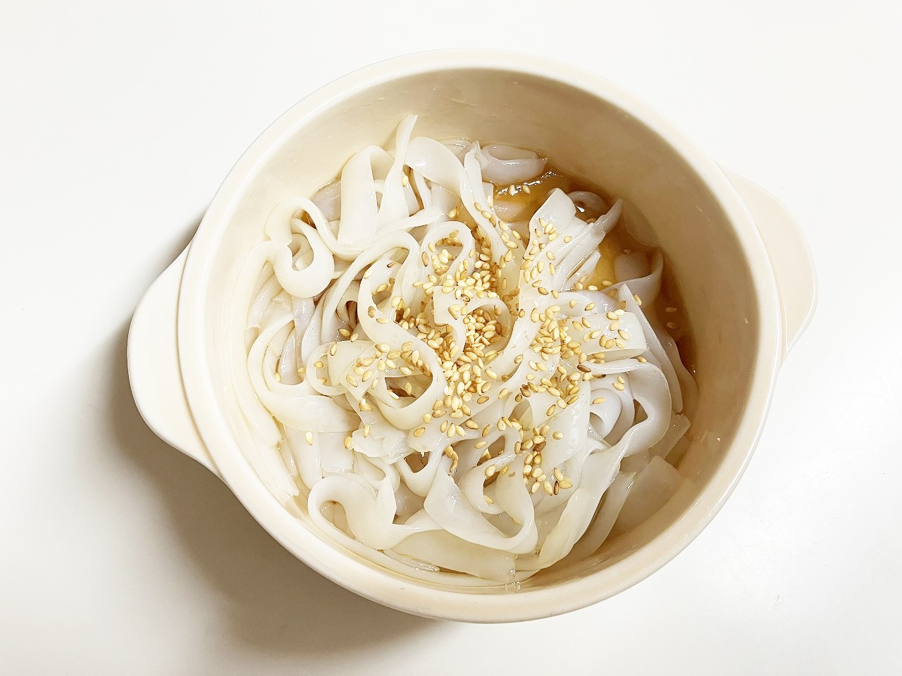 『しゃぶしゃぶ蒟蒻』 は少量のお酢を入れた酢水に1分ほど漬けて、さっと洗います。ここにごま油 大さじ1、醤油 大さじ1、酢 大さじ1/2を入れてよく混ぜ、いりごまを振ったらできあがり💖