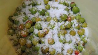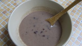 ボウルに『タピオカ粉末』 20g、薄力粉 20g、グラニュー糖 3g、水 60gを入れてよーく混ぜます。テフロン製のフライパンで楕円形に薄く流して焼き、全体が乾いたらさっと裏返して焼きます。冷めたら粒あんを一口サイズに丸めたものをくるくる包んで出来上がり