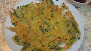 大根300gはすりおろします。ここに『玄米粉』 110g、干しエビ 大さじ5、小口切りにしたネギ 4本分くらい、塩 小さじ1/2を入れてよく混ぜ、フライパンにスプーンで落としてごま油少々で両面こんがり焼いたら出来上がり\(^o^)/