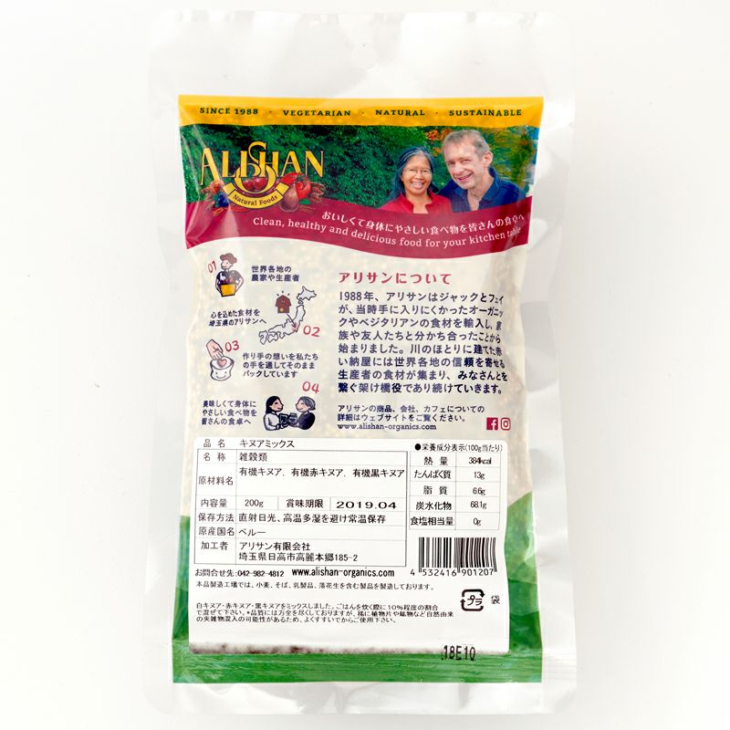 他の画像を見る 取寄せ商品 良質のタンパク質を含んだバランスの取れた穀物キヌア。白・赤・黒キヌアのミックス。 キヌアミックス 200g <オーガニック>|アリサン 【取寄せ・最大14営業日要】 クロゆパ No. G126- 販売価格 ¥ 653 税込 お気に入りに登録する