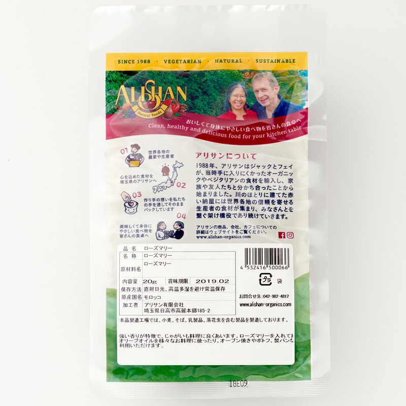 他の画像を見る 取寄せ商品 じゃがいも料理によく合うハーブ ローズマリー20g <オーガニック>|アリサン 【取寄せ・最大14営業日要】 No. Z15- 販売価格 ¥ 410 税込 お気に入りに登録する