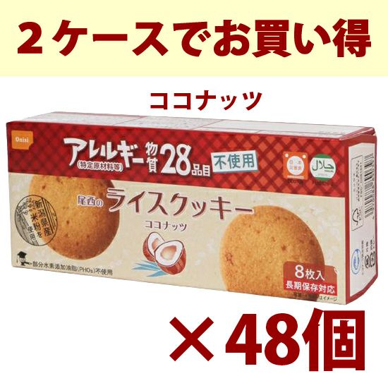 他の画像を見る 取寄せ商品 【28品目不使用・5年保存対応】 ココナッツ風味のサクッと軽い米粉のクッキー、新潟県産米使用 【お尋ねください・入荷まで3か月以上かかります2024.9.25】【取寄せ】【まとめ買いで割引/お菓子・ポイント1倍】 尾西のライスクッキー ココナッツ風味 8枚入り@293⇒@279×48個セット|尾西食品 [アレルギー対応] アレルギー 割引 後払い不可 No. 0106 定価 ¥ 14,064 のところ 販売価格 ¥ 13,392 税込 在庫切れ 詳細を見る お気に入りに登録する