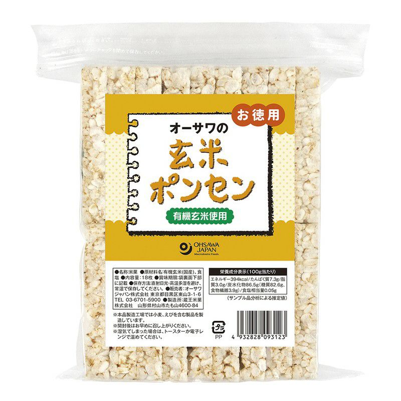 他の画像を見る 取寄せ商品 国産有機玄米100%使用、軽い食感と程よい塩味 オーサワの玄米ポンセン お徳用 18枚|オーサワジャパン 【取寄せ】 Point2倍 No. 9312- 販売価格 ¥ 734 税込 お気に入りに登録する